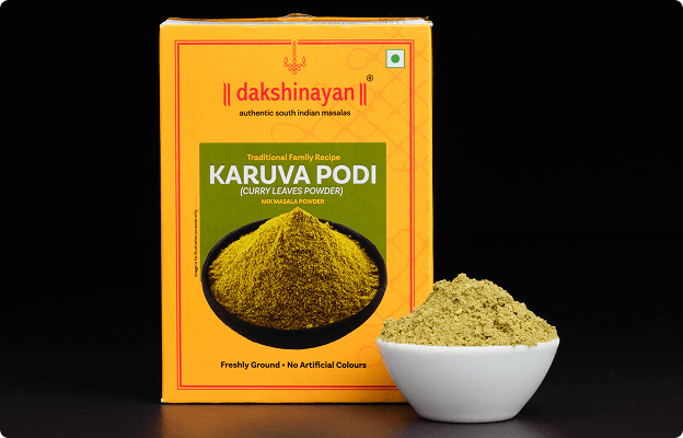 Inspired by the rich culinary heritage of Tamil Nadu, our Karuva Podi is wholesome, freshly ground blend of curry leaves, lentils and spices. Packed with protein and bursting with flavour, it enhances every meal, making it both delicious and nutritious.